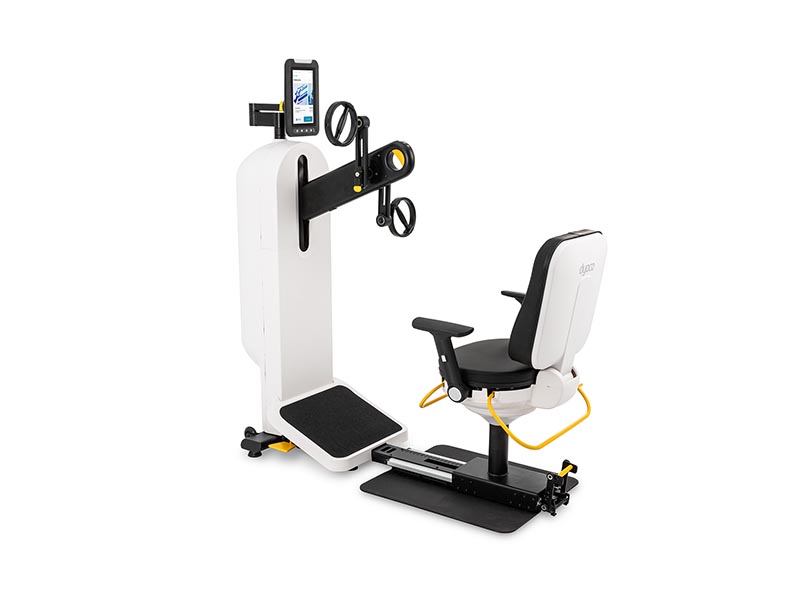 Die 10-Zoll-Touchscreen Konsole ist mit Multi-Konnektivitätsprotokollen ausgestattet und ermöglicht den Zugang zu Cloud-Analysen. Dadurch wird der Oberkörpertrainer von Dyaco Medical zu einem unverzichtbaren Werkzeug für Physiotherapien, Kliniken und Spitäler und ihre Patienten, das verbesserte Therapie- und Rehabilitationsergebnisse fördert.