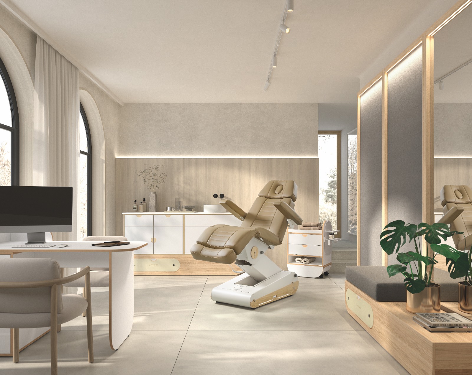 Mit dem modularen Möbelsystem IKON von Naggura Rooms bringst du Struktur, Stil und Funktion in perfekte Balance. Ob kompakter Behandlungsbereich oder grosszügig gestaltete Therapiezonen – unsere flexiblen Basis-Module passen sich deinem Raum und deinem Arbeitsstil an.